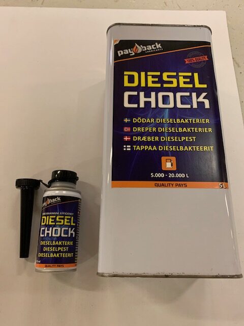 DIESEL CHOCK Bakteerien poistoaine. Bakteerit vapauttavat orgaanisia happoja, jotka aiheuttavat korroosiovaurioita koko dieseljärjestelmässä, mikä voi johtaa korkeisiin kustannuksiin. Diesel Chock estää bakteerien kasvun. ESITE